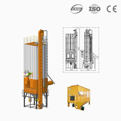 뜨거운 공기는 곡물에 열을 전달하여 이득의 온도를 높인다. 함유된 물은 공기 속으로 증발하여 폐기물 가스로 변한다. 건조한 곡물은 균형을 이루는 섹션으로 아래로 흐른다.평형 구간을 통과 한 후, 곡물은 내부와 외부에서 온도와 습도의 균형점에 도달하여 균일한 습도 감소를 달성합니다.그 후 곡물 냉각 섹션에 들어가 저장 온도까지 냉각결국 건조한 물질은 출구를 통해 배출됩니다.